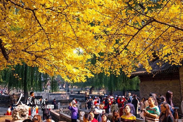 山西太原:银杏金黄秋意浓【3】 2025年10月29日,山西省太原市晋源区晋祠博物馆内多棵百年银杏进入最佳观赏期,吸引市民和游客驻足观赏、拍照留念。张锋摄(人民图片网)
