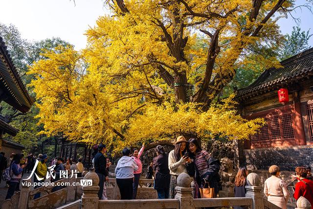 山西太原:银杏金黄秋意浓【5】 2025年10月29日,山西省太原市晋源区晋祠博物馆内多棵百年银杏进入最佳观赏期,吸引市民和游客驻足观赏、拍照留念。张锋摄(人民图片网)