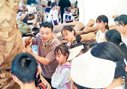 深秋的雨城区桂花村凤鸣雅集扎染工坊里,非遗研学活动热闹非凡。蜡染手艺人老张手持蜡刀,边绘制珙桐花刺绣图案,边向孩子们讲解:“这珙桐花可是高山植物活化石,像不像展翅的白鸽?”扎染、荥经砂器制作、蒙顶山茶艺等非遗技艺,不再是玻璃展柜里的标本,而是通过沉浸式体验和创意产品再造,融入现代生活。