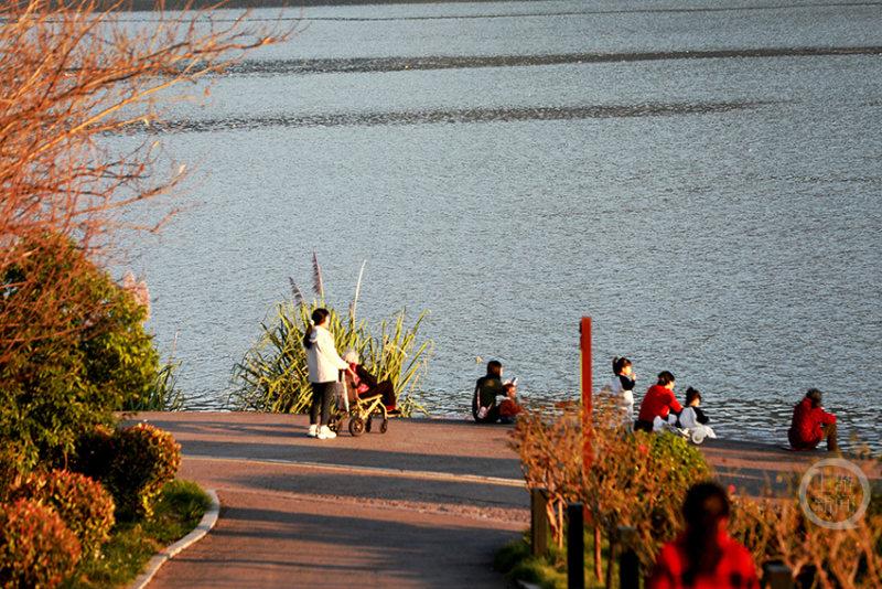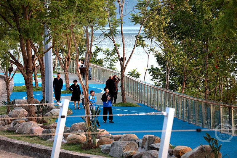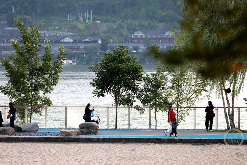 漫步在环湖绿道,从滨江公园到月光草坪公园,但见江水如巨大的蓝宝石镜面,倒映着远山与天空。