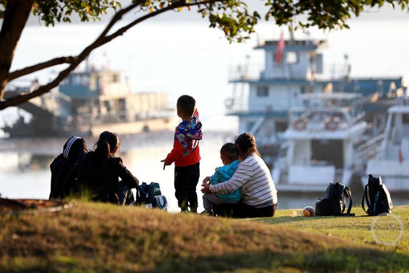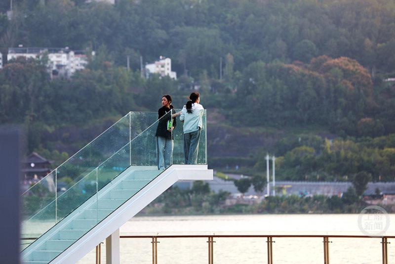 趁着晴好天气,市民们纷纷来到江畔——孩子们在草坪奔跑嬉戏,年轻人举起手机捕捉“山水大片”,老人们在长椅上闲话家常。处处是闲适的脚步和笑语,人与自然在这一刻和谐相融。