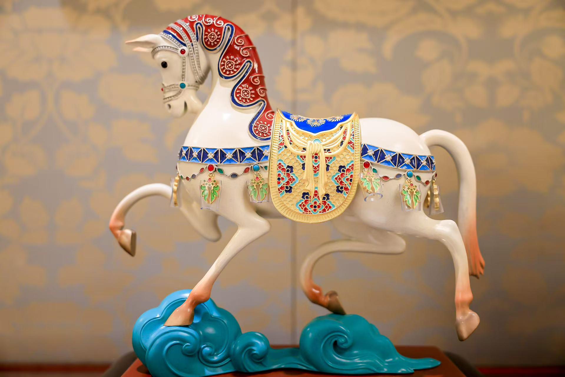 展览以常沙娜历时数十年创作的敦煌壁画手稿为原型呈现的20余幅珐琅和金丝琅彩作品及和国家级非遗传承人朱炳仁大师共创的珐琅铜雕《霓裳天马》。珐琅美学和敦煌文化的跨界融合,让千年壁画在金属胎体上 “永生”。展期自2025年10月28日至2026年1月31日,免费开放。