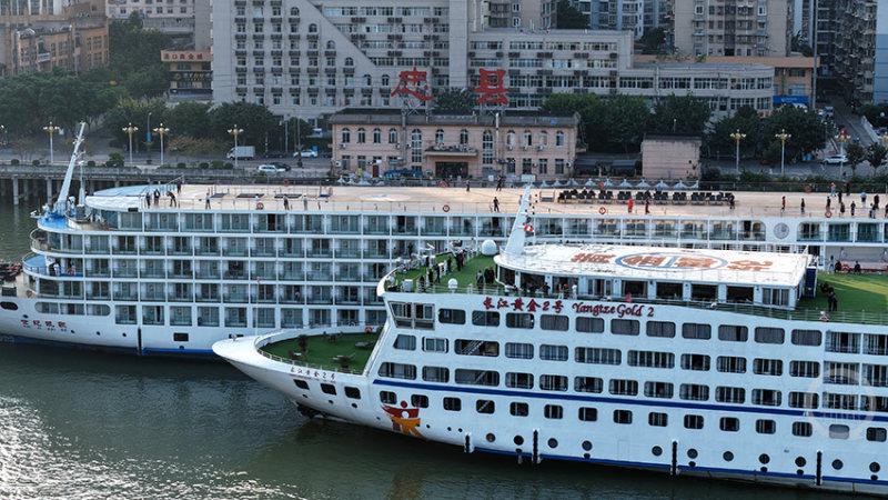 在长江忠县石宝镇段,国家AAAA级旅游景区、全国重点文物保护单位石宝寨四面环水,宛如停泊在长江之上的一艘巨型航母。
