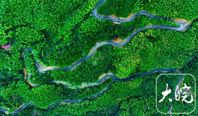 空中俯瞰凫山村的盘山公路姚华路。殷平/摄