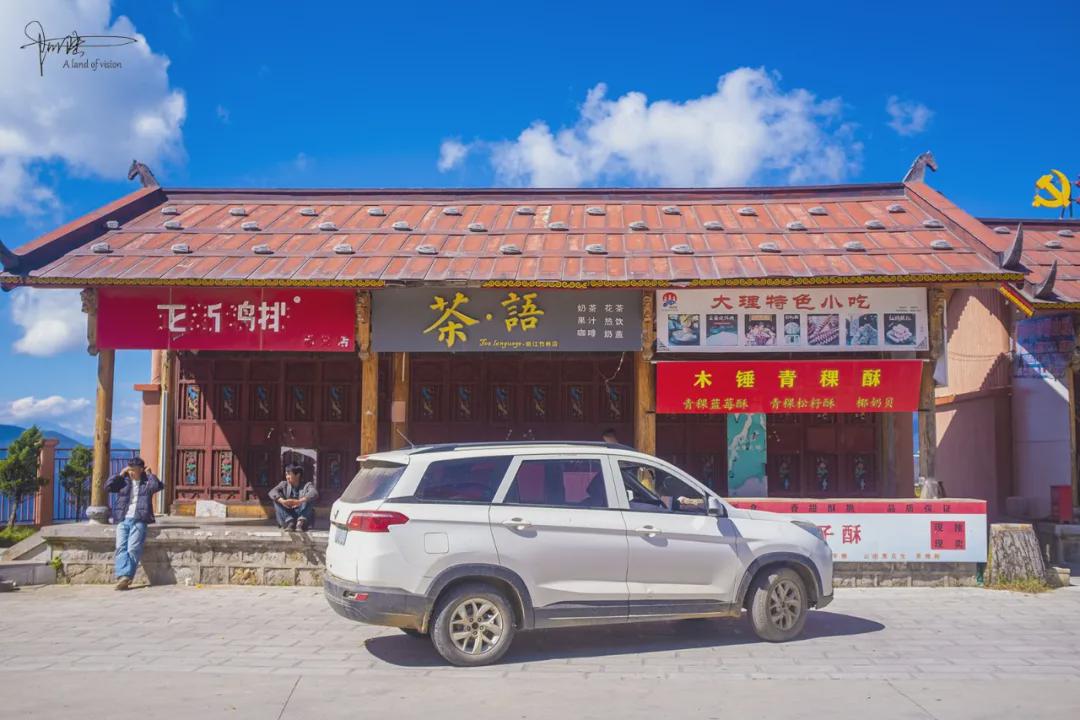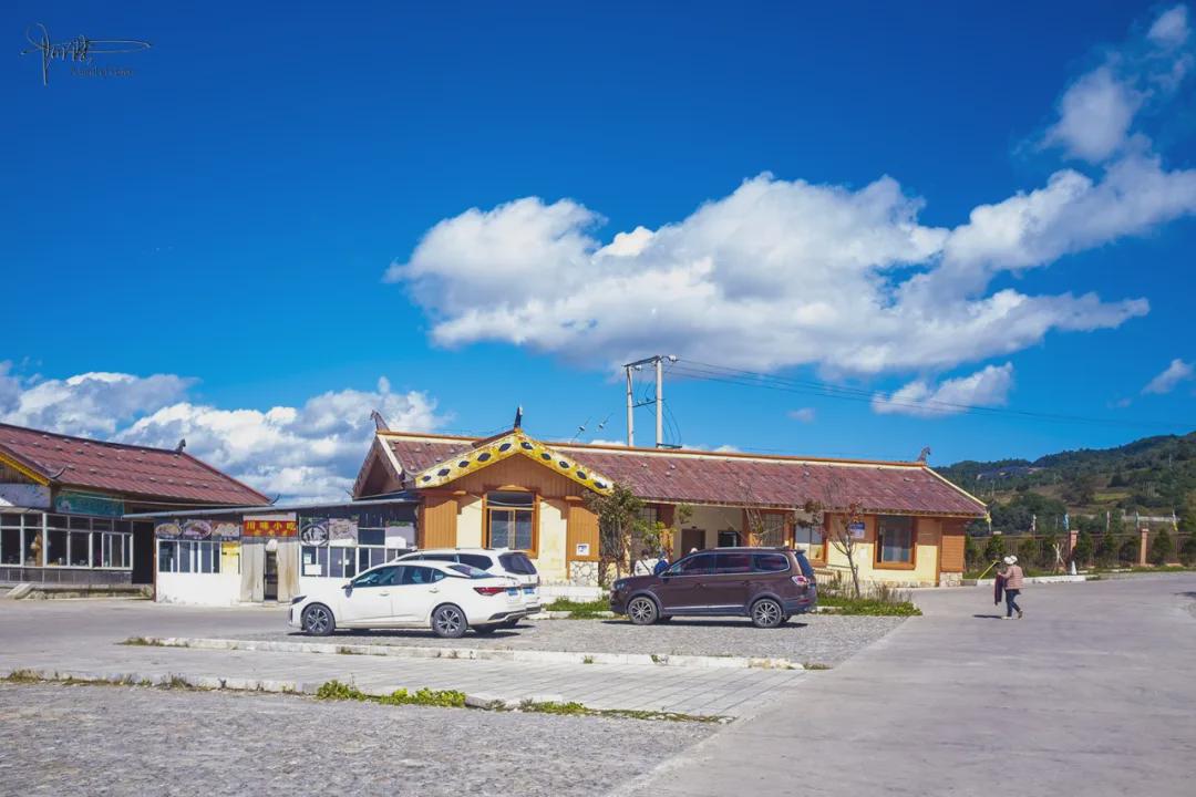 从泸沽湖前往丽江,中途会经过很多观景平台,它们要么是以村为名,要么是借着附近出众的自然风光和人文景观,开辟出宽敞的停车场,然后配套公厕和一排排商铺,为路过的游客提供餐饮、购物和拍照取景等温馨的服务的综合型旅游驿站,像这个“沙力村旅游先锋服务驿站”,就是其中让我最印象深刻的之一。