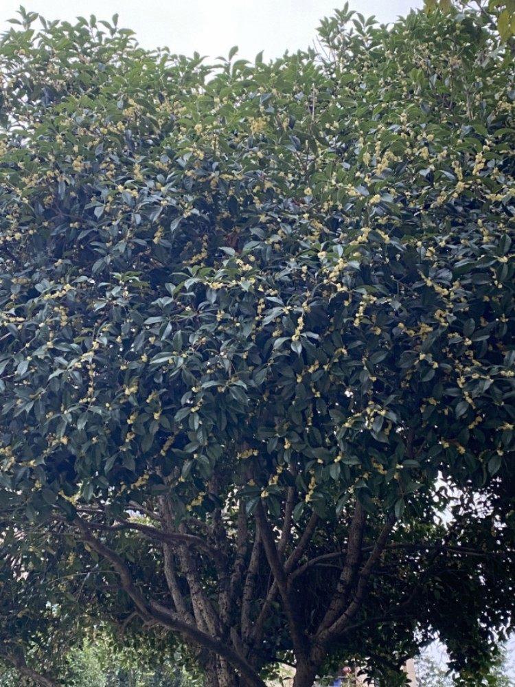 清晨出门散步的时候,被一阵阵甜香所吸引。循香而去,原来是小区中庭的桂花树开花了。
