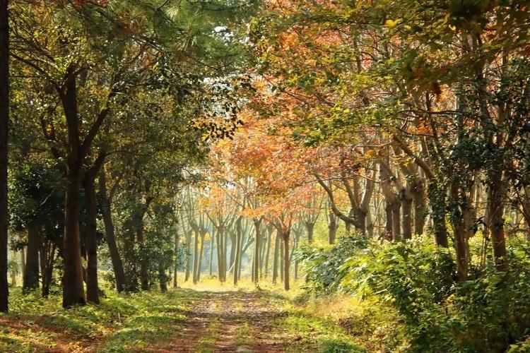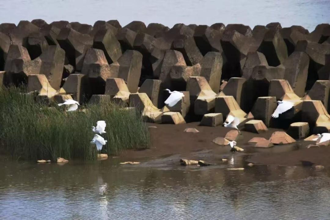 绵延的防护林与芦苇荡将小岛轻柔环抱
