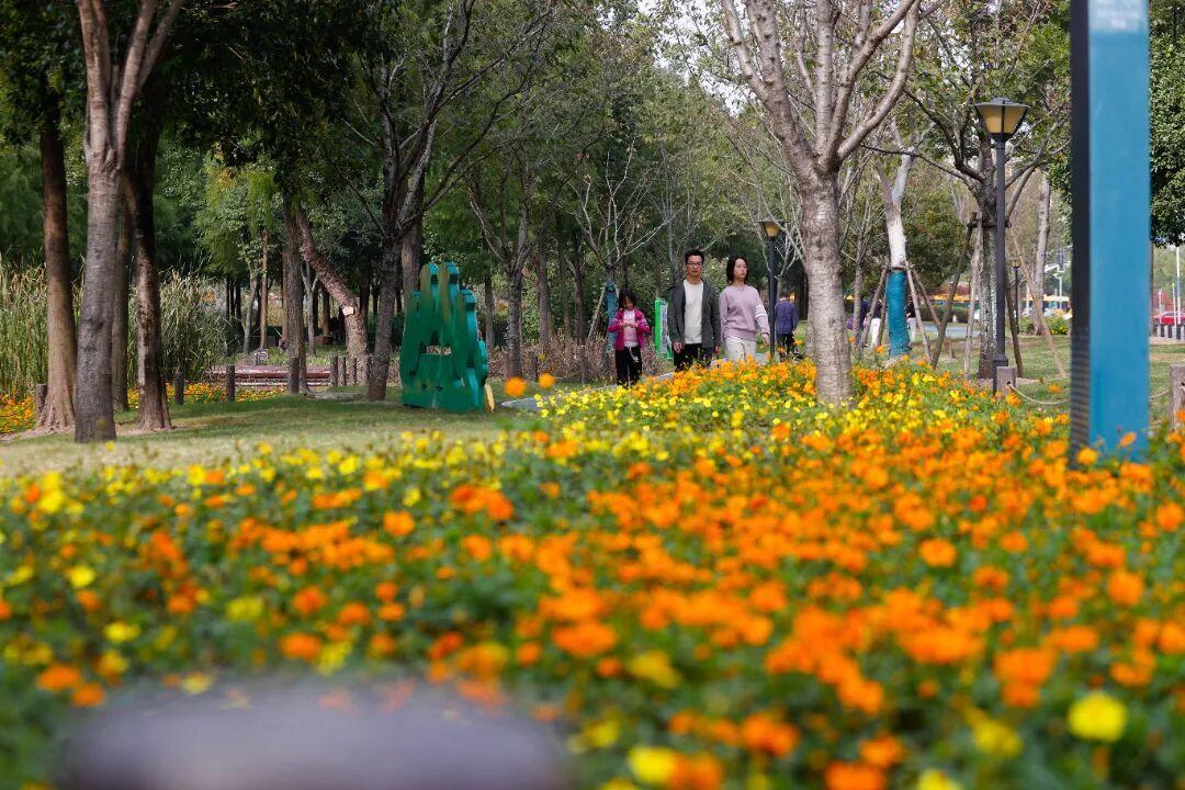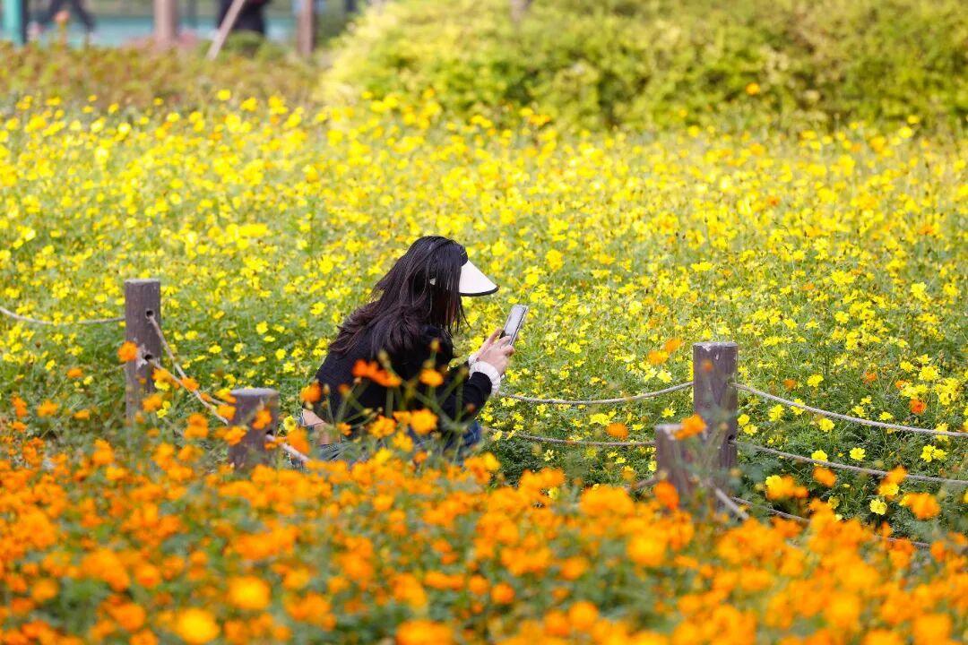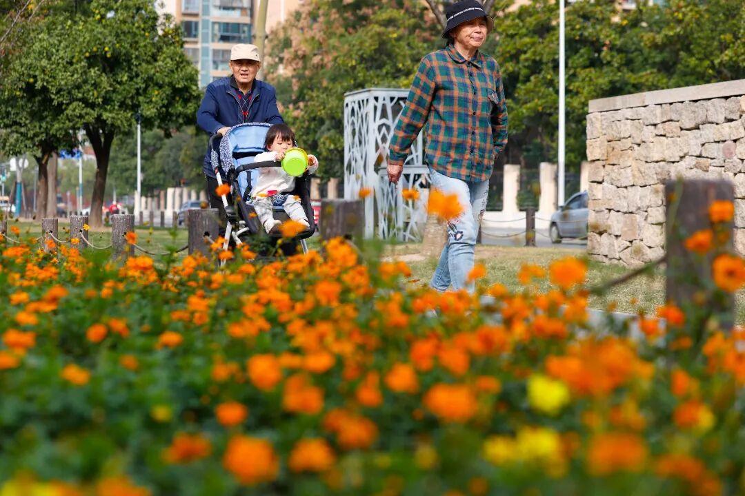 方松体育公园步道旁的秋英(波斯菊)近日迎来盛花期,形成了一片迷人的黄色花海,步道也变身金色走廊。记者11月4日在现场看到,众多市民漫步其中,散步赏景,拍照留念,花海成为一道独特的秋日风景,为城市生活增添了亮色与惬意。