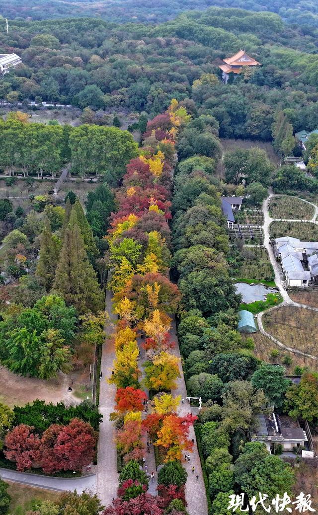 先别急着馋那口奶fufu的糖葫芦,脆山楂裹软奶的甜,哪抵得过明孝陵石象路的“视觉暴击”?有着“最美600米”之称的石象路,早已披上“黄金战袍”:银杏黄得晃眼、乌桕红得热烈、梧桐绿得深沉,三层色彩叠在一块儿,活脱脱把秋日调色盘泼在了路上。阳光穿过枝叶洒在石板上,随便站定拍一张,无滤镜都能刷爆朋友圈,妥妥的“南京秋日顶流”!