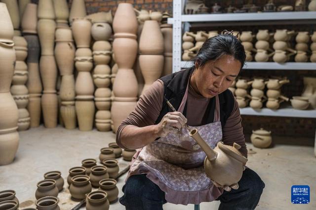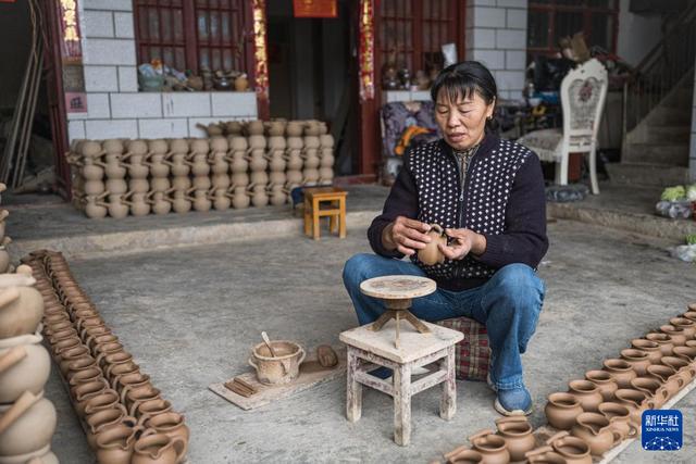 11月5日,村民在云南省曲靖市潦浒村自家院落中制作陶器。 潦浒村位于云南省曲靖市,地处珠江源的南盘江畔。当地陶瓷制作历史悠久,传承宋代、明清制器技艺。龙窑、陶坊等文化景观与乡村田园风光相得益彰,构成千年陶瓷古村的美丽风景。 新华社记者 王冠森 摄