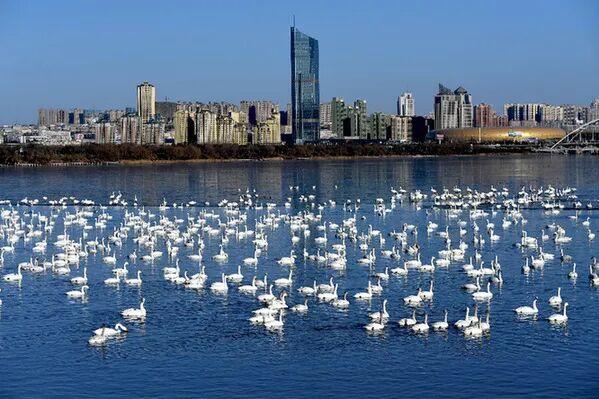 白天鹅在三门峡的观赏期从每年10月中旬持续到次年3月。其中,12月至次年2月是观赏高峰期,天鹅数量最多,场景最为壮观。