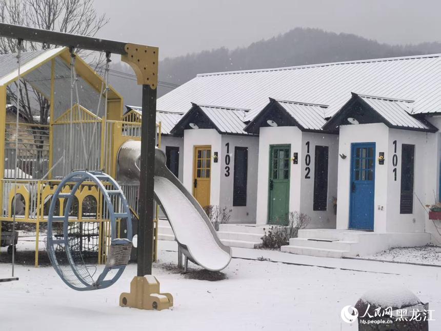 人民网牡丹江11月8日电 11月8日,黑龙江省海林市横道河子镇迎来降雪,雪花簌簌飘落,将这座百年铁路小镇装点成银装素裹的童话世界。俄式老建筑披上白色外衣,中东铁路博物馆的蒸汽机车头也覆盖着厚厚的积雪,与飘落的雪花共同构成一幅冬日图景。