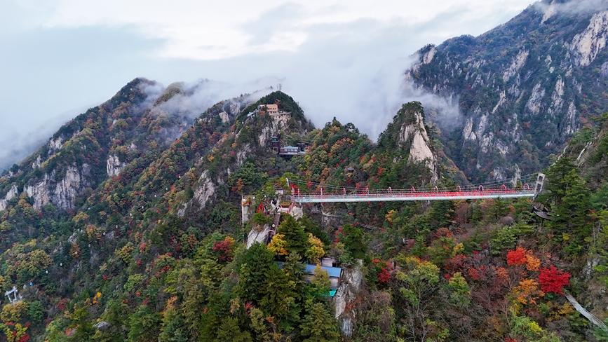 人民网南阳11月10日电 (记者尚明桢、宋芳鑫)初冬时节,河南南阳老界岭景区万亩彩林进入最佳观赏期。红黄绿三色交织如天然调色盘,与云海相映成趣,更有“一山跨南北,半秋半冬”的独特奇观。10月中旬至11月下旬,正是邂逅老界岭万亩彩林的黄金时段,为让游客感受这场斑斓的视觉盛宴,景区免门票政策将持续至年底。