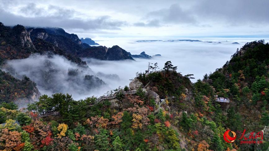 老界岭红叶正盛,云海相伴。杨永青摄