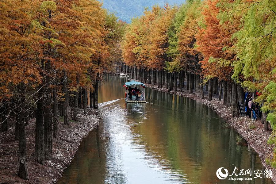 “每年11月中下旬至12月,红杉林进入最佳观赏期。”宁国市落羽红杉林旅游发展有限公司负责人王君介绍,目前景区已将竹筏升级为电驱动,既保留了泛舟赏景的惬意,又守护了青龙湖的碧水蓝天,让游客能近距离感受生态之美。