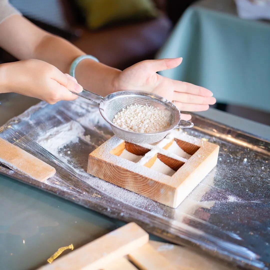 木质模具里,填入豆沙或芝麻馅料,轻轻一磕,带着一个个可爱图案的糕点便完美脱模。