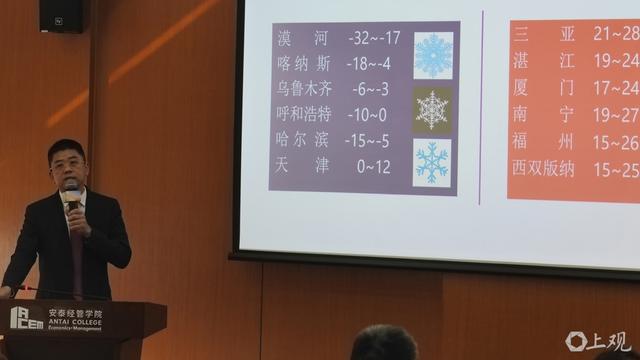 罗守贵教授解读11月30日南北方城市气温对比。徐瑞哲 摄