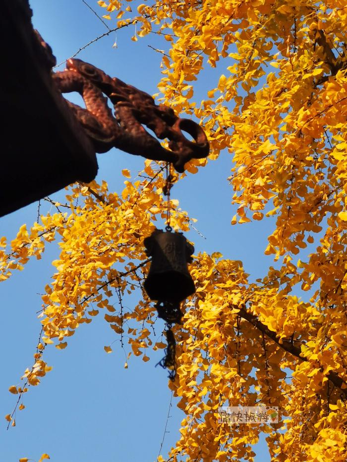 大雄宝殿左侧的银杏正值最佳观赏期,满树皆为金灿灿的“黄金叶”。