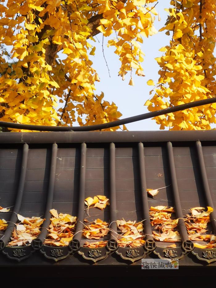 虽然树梢银杏叶不多,并丝毫不影响金黄的银杏叶与传统的飞檐翘角构成的中式美图!