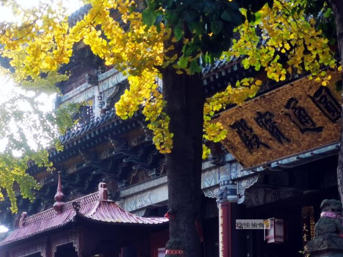 圆通宝殿前的光影银杏颇有古刹的禅意