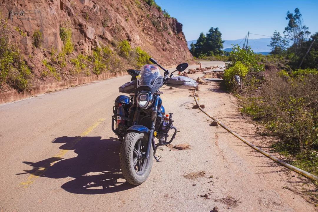 这条“弥巍线”的99%都在群山之间穿梭,最高海拔为2700米,除了郁郁葱葱的树木包围外,先后会经历长达数公里的“红土坡”和“黄土坡”,裸露的山体和四周渐显秋色的植被相互映衬,把五彩斑斓的姿色展现无疑。不过这些路段的地面大多积有碎石和泥沙,骑摩托车的朋友务必跟我一样加倍小心谨慎,尤其过弯的时候,基本上都是龟速。
