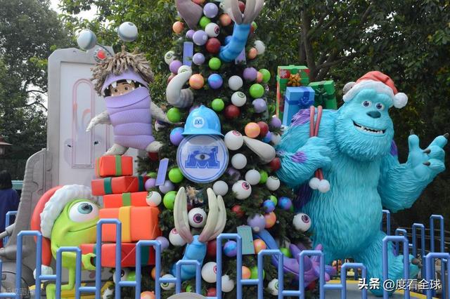 最受小朋友欢迎的当属“怪兽大学主题圣诞树”,这棵圣诞树的颜色特别鲜艳,以蓝色和绿色为主,树上挂着毛怪苏利文、大眼仔麦克的玩偶挂件,还有怪兽大学的校徽装饰。树干上还缠绕着蓝色的灯带,晚上亮起的时候,就像置身于怪兽大学的校园里,充满了童趣。很多小朋友看到这棵树都挪不开脚步,非要和毛怪、大眼仔的挂件合影,家长们也趁机记录下孩子的快乐瞬间。