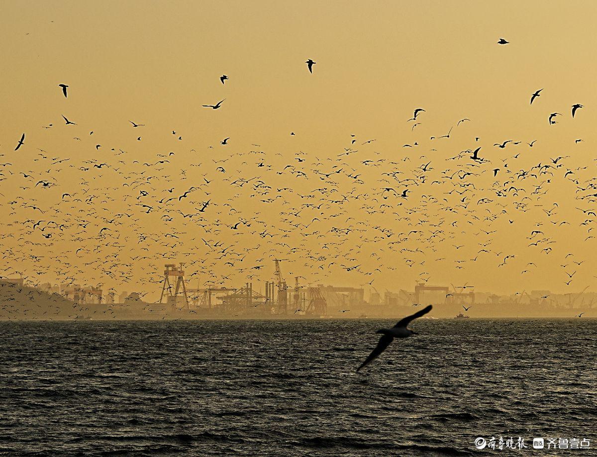 2025年12月2日傍晚,青岛西海岸新区唐岛湾的暮色里,一场自然与城市的邂逅正在上演。残阳如碎金铺洒...