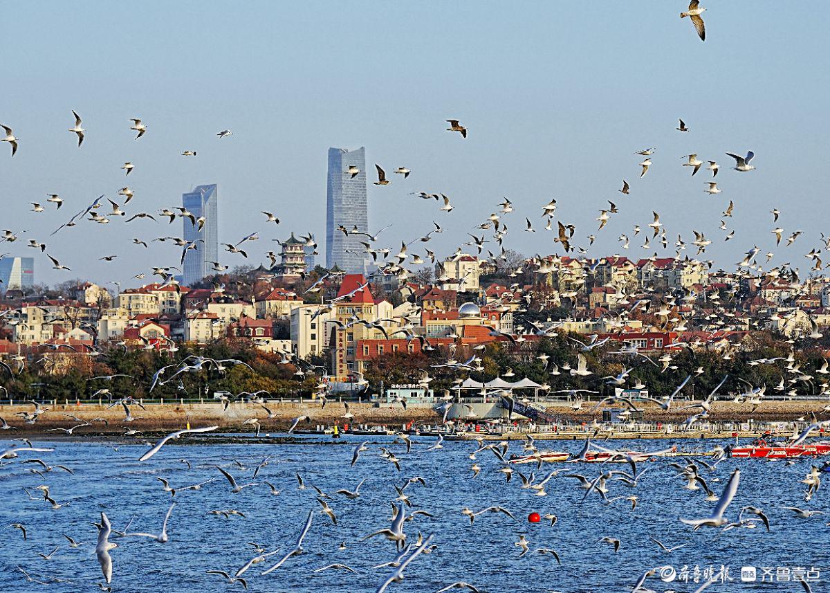 青岛藏着冬日顶流!1 处海湾 + 2 种光影,红嘴鸥把浪漫拉满