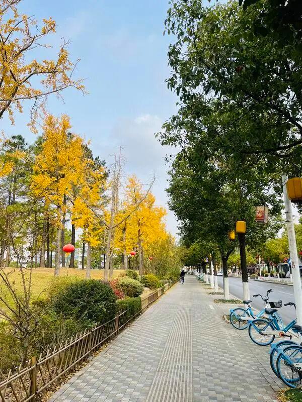 罗芬路的银杏景观则尽显“黄金甲”的璀璨,几十棵银杏树沿美兰湖路至美兰湖国际会议中心段排列,西侧绿化带中金黄落叶与翠绿草坪相映成趣,与美兰湖社区风情街共同构成诗意画卷。