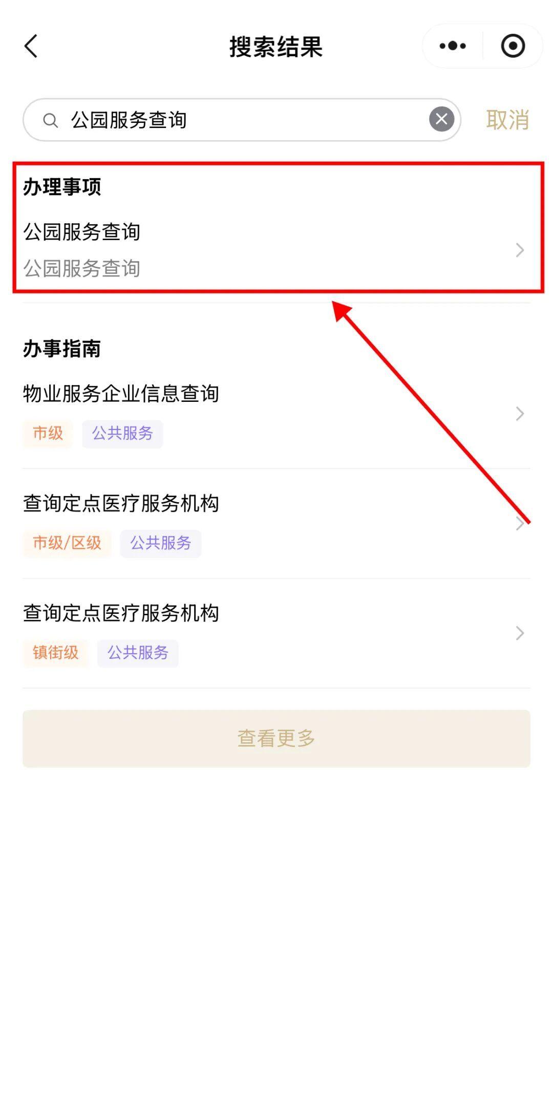 打开“随申办市民云”(app/微信小程序/支付宝小程序),首页搜索栏输入“公园服务查询”点击进入。