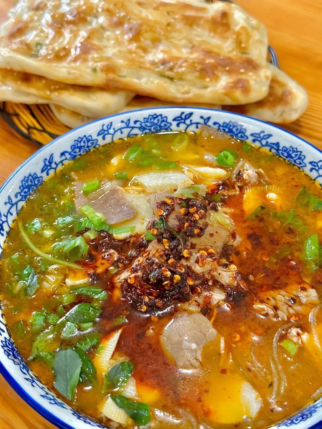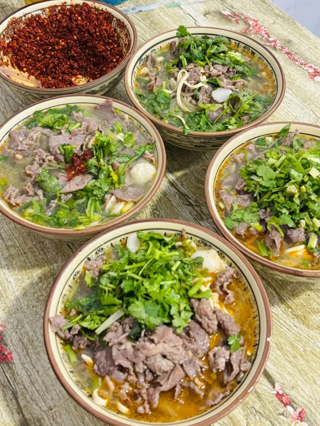 清澈鲜美的牛骨汤底,配上爽滑的粉丝、千张和现切的薄牛肉片,最后撒上一把香菜和葱花,一口下去,汤醇肉香,暖心暖胃。