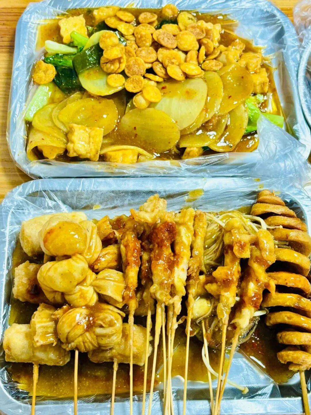 将土豆切成薄片油炸至脆嫩口感,搭配多种配菜,淋上甜辣咸三味灵魂酱汁,香辣入味、酱香浓郁,是逛吃途中的绝佳解馋选择。