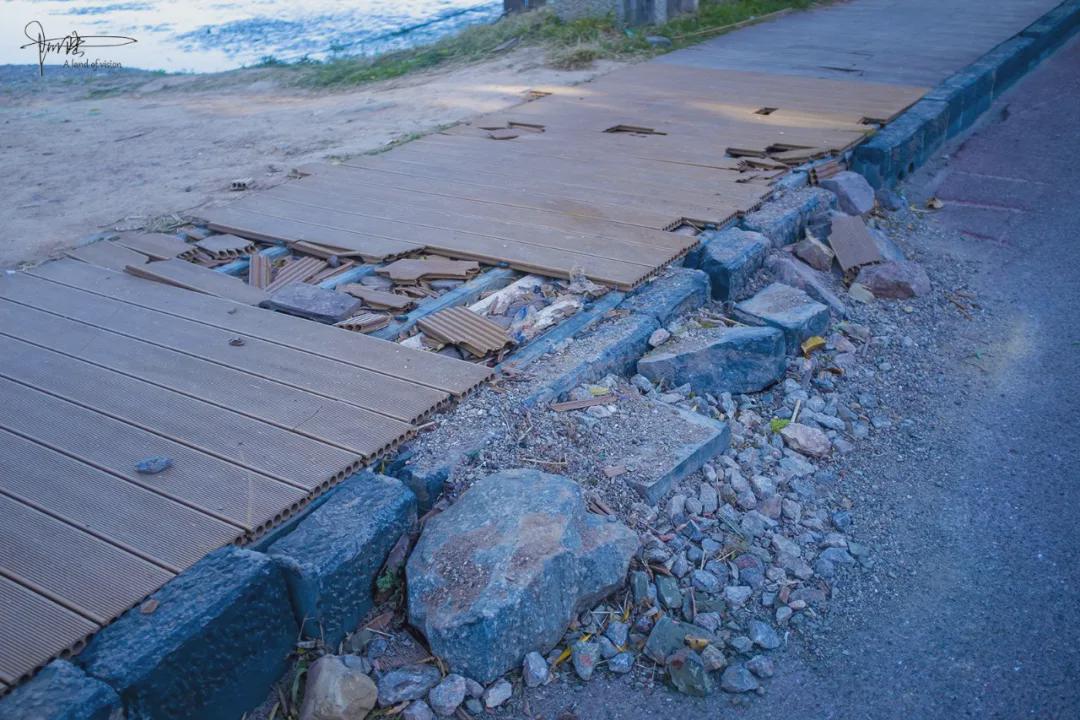 像我也是经过不断的观察,才在路边发现这样一个缺口,猜测是当地相关工作人员的工作车辆所为。因为担心碾压出来的路面有碎石铁钉,加上这些板材看上去仍然很不靠谱,而摩托车就算进来也只能往前跑几十米土路,所以当时就没选择“冒险”。