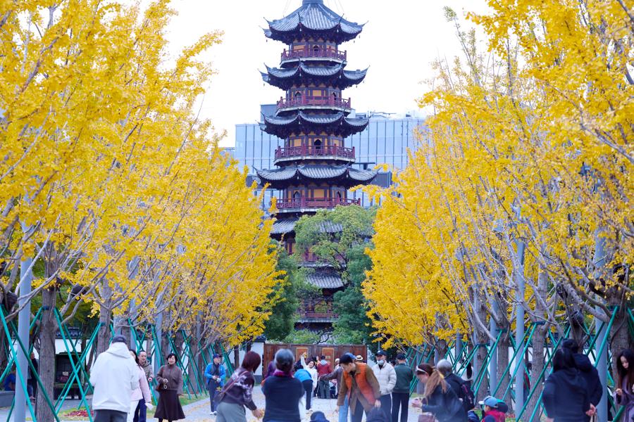 徐汇绿化部门提示,目前龙华寺银杏景观处于最佳观赏期,预计将持续一周左右,慈云街“落叶不扫”点位的景观则可持续至12月20日左右。建议市民游客尽量选择工作日错峰前往,既能更好感受秋景韵味,也能获得更佳的拍照体验。