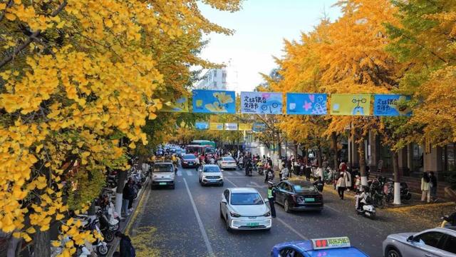 秋冬时节,昆明五华区文林街变身浪漫银杏大道,道路两侧银杏树满目金黄,细碎金叶随风飘落,成为市民游客打卡拍照的热门地,随手一拍皆是氛围感大片,兼具逛玩与出片属性。