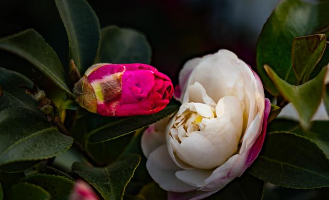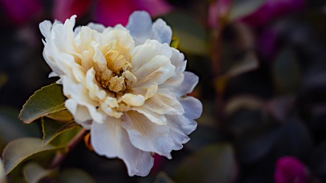 近日,河南省驻马店市遂平县吴房文化园,满园的山茶花在冬日暖阳下肆意盛放,白瓣凝霜,红蕊燃霞,风携浅香,解锁冬日最治愈的景致。图为吴房文化园盛开的山茶花。