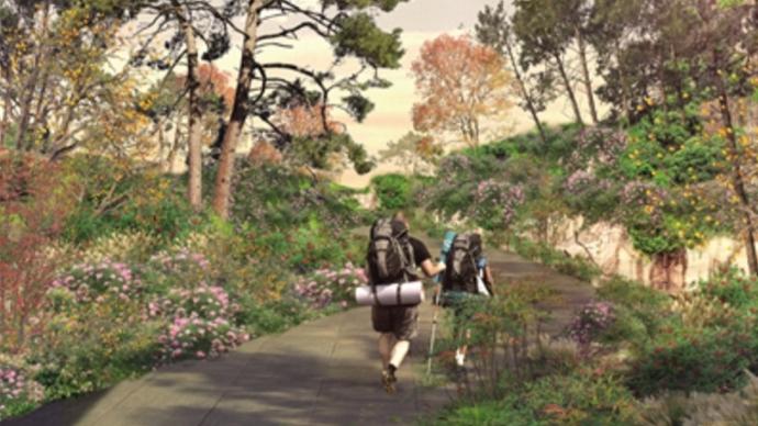 “开园后,游客在绍兴园的游览路线为300多米,立体游览体验时间将会比常规设计多一倍。”王旭达介绍说,这一独特的游览体验得益于团队精心构建的“立体溪山行旅图”。设计模拟宋代山水画的意境,以竖向立交设计最大化利用空间,形成了内外双环、总长超过300多米的立体游线。外环游线长达158米,包含了沿水而设的纤道、穿行山谷的谷道、登高望远的山道以及连接岩廊上下的双层廊道,这种多维度的游览路径让游客能够在同一块场地上体验平地漫步、山谷穿行、登山远眺、廊中观雨等丰富感受。