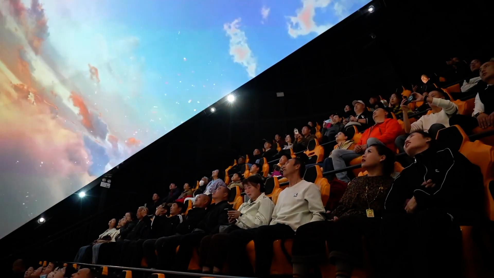 在球幕影院,北宋画家张择端的《清明上河图》“活”了起来,在动态光影辅助下,游客仿佛跃入画中游览千年前的东京汴梁。