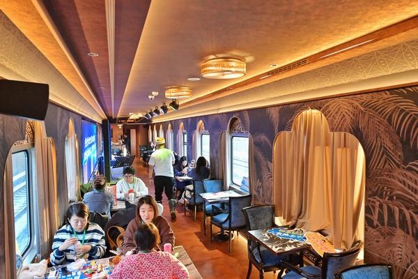 该趟专列配备全景观光车厢,沿途雪景可尽收眼底;列车设置专属管家,可提供导游介绍等服务;同时,列车上提供拍照道具,供游客在车内选景拍照。