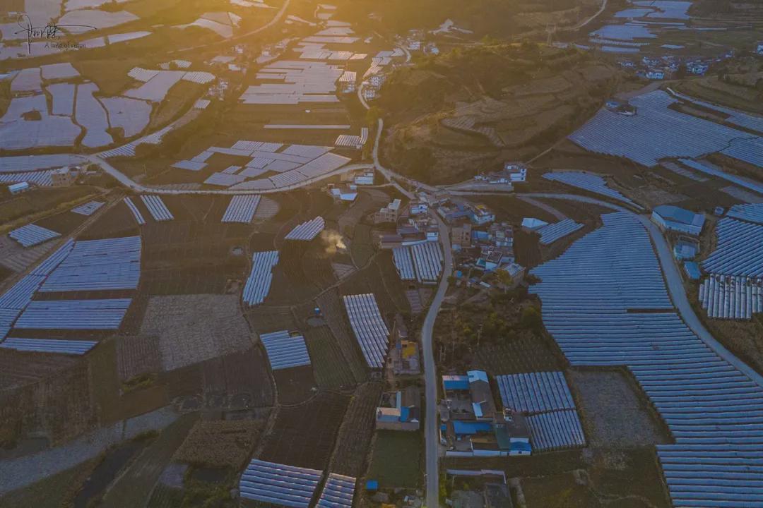 太阳很快便从远处的山岙中探出来头来,把眼前的美丽乡村和开阔的田野渲染出一片片金黄,因为村庄附近有很多起起落落的山丘,应势而垦的菜地果园庄稼地,此时便尽显“明暗交替、光影变幻”,而这个过程仅持续了短短几分钟,四周氛围已然是接近“日上三竿”。