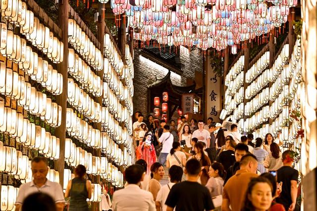 白天,这里宛如“清明上河图”再现,夜晚更似现实版的“仙侠世界”,这个悬崖上的小镇,正吸引着世界各地的游客前来打卡游玩。
