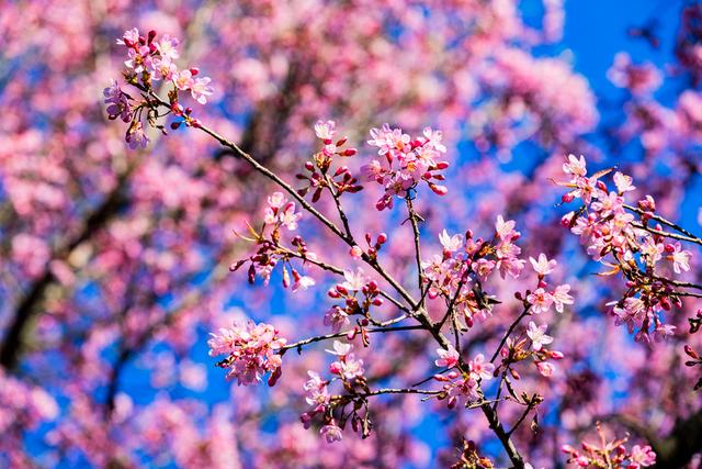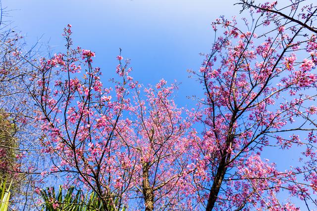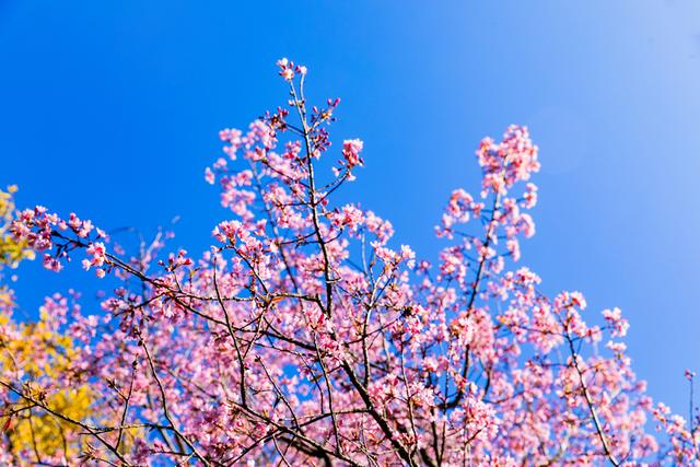 2025年12月11日,昆明的冬樱花迎来盛放期,粉艳花簇缀满枝头,与蓝天相映成趣。这份冬日限定美景,让春城的冬天尽显浪漫。(未经授权,请勿转载)