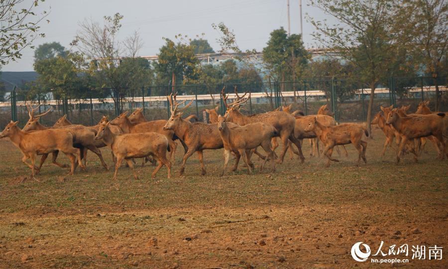 洞庭湖麋鹿苑的麋鹿群。人民网记者 刘宾摄