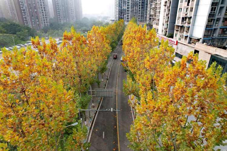 红榉燃冬韵 梧桐铺街景 山城换上限定“彩妆”