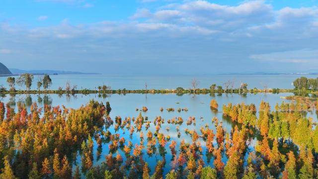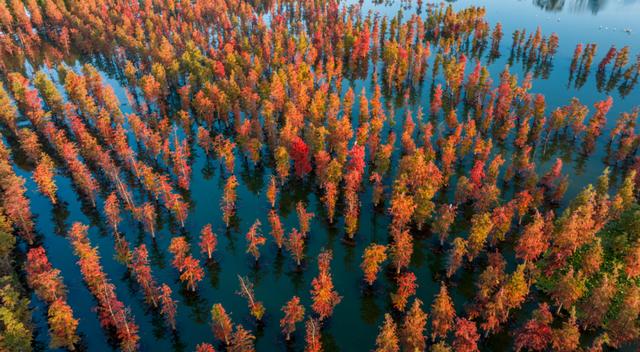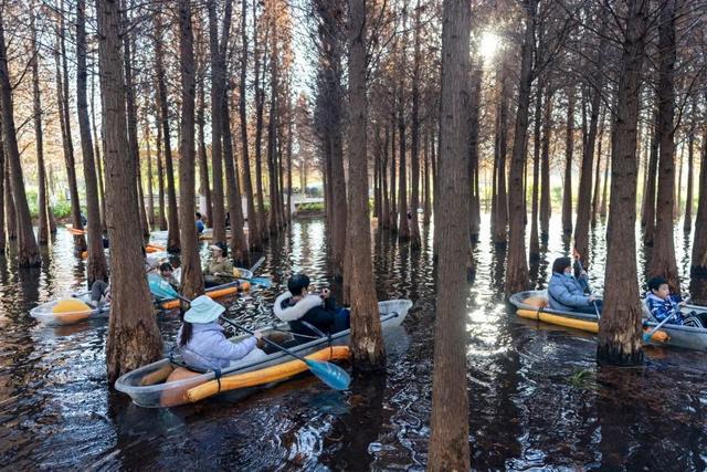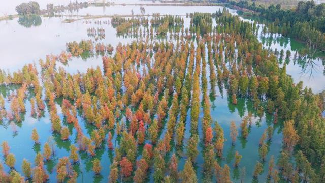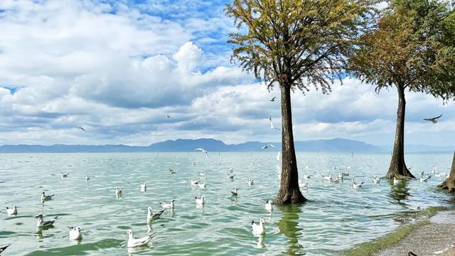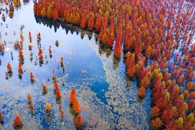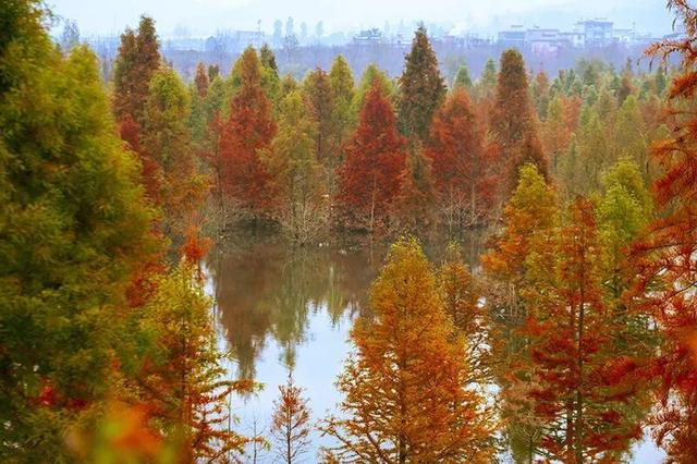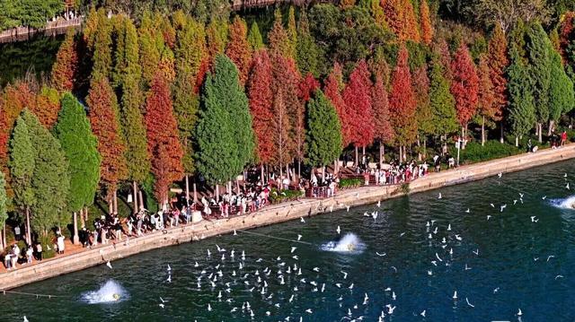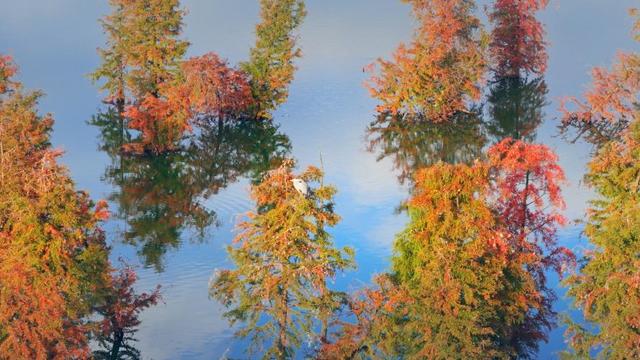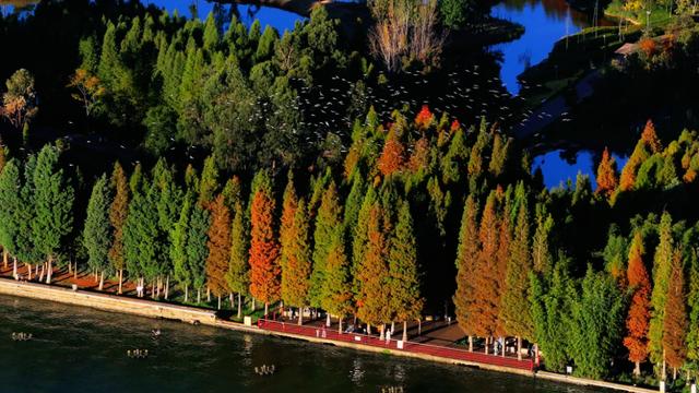 都沉醉在这红杉映鸥、水光共色的冬日盛景中